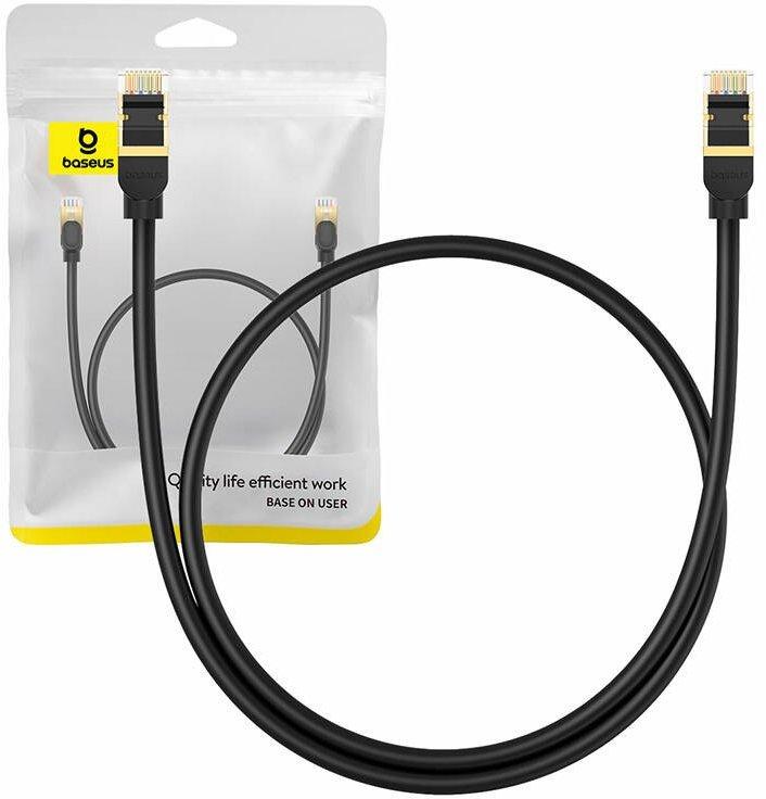 Baseus Ethernet cat. 8 RJ45, 40Gbps, 0.5m (black) network cableWith the Baseus cable, you can instantly transfer files at a speed of max. 40Gbps. What's more, the reinforced cable and the use of pure copper ensure stable signal transmission without interference. In turn, the PVC finish is responsible for resistance to bending and translates into a longer product life. You will successfully connect the cable to your router, switch, modem or TV.Fast signal transmissionThe Baseus cable provides lightning fast network speeds of up to 40 Gbps at 2000 MHz. This means you can work, play games or watch movies without worrying about stuttering. In addition, the use of pure 26 AWG copper, aluminum alloy and gold-plated connectors eliminates electromagnetic field interference. ManufacturerBaseusManufacturer codeB0013320A111-00ColorblackLength0.5 mTransmission speedmax. 40 GbpsBandwidth2000 MHzCompatibilityWindows, iOS, Linux
