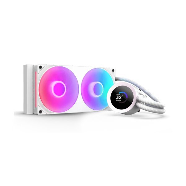 Get high-performance cooling and display a favorite image or GIF, monitor real-time PC performance metrics, and more with NZXT CAM software.Pump features an embedded 1.54 square LCD screen to display real-time system info or custom images Adjustable screen orientation accommodates pump head position Powerful Asetek pump provides optimal cooling and up to 2,800 RPM whisper-quiet operation Includes high-performance PWM fans with fluid dynamic bearings for optimal cooling Includes F140/F120 RGB Core fans Single breakout cable simplifies installation Rubber tubing is reinforced with nylon-braided sleeves to prevent leaks Control custom screen content, pump speed, and zero-noise fan curves with NZXT CAM Control custom screen content, RGB, pump speed, and zero-noise fan curves with NZXT CAM software.