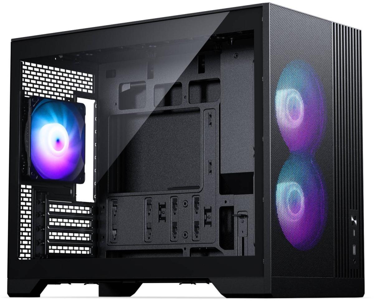 Elegant Midi-Tower by InWin, unique cooling concept, power supply chamber at the top with mesh, space behind for vertically mounted radiators, semi-tall tempered glass side window, one pre-installed 120-mm ARGB PWM fan, I/O panel with USB 3.2 Type C.