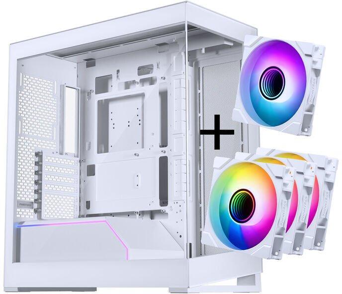 Midi-tower case with four pre-installed D-RGB fans 360mm radiator support at the top for optimal cooling performance Compatible with ASUS BTF and MSI Project Zero motherboards Tempered glass side window for an unobstructed view of your components Glacier One 360M25 Gen2 with powerful pump and RGB lighting Three quiet M25-G2 fans with high static pressure Integrated VRM fan on the pump cover High-quality build and optimized airflow Optimal Cooling Meets Stylish Design The XT Pro Ultra offers space for up to ten fans and supports radiators up to 360mm at the top. With four pre-installed 140mm D-RGB fans, it provides excellent airflow right out of the box. The mesh front panel and tempered glass side panel combine functionality with aesthetics. The Glacier One 360M25 Gen2 AiO cooler delivers excellent cooling performance thanks to its powerful pump and three optimized 120mm PWM fans—ideal for high-end Intel and AMD CPUs. Integrated D-RGB lighting ensures a clean yet spectacular look. Room for High-End Components The XT Pro Ultra provides space for graphics cards up to 415mm in length and CPU coolers up to 184mm in height. The case is also ready for vertical GPU mounting and offers enough space for 2x 3.5" and 5x 2.5" drives. ATX and even E-ATX motherboards fit easily as well. Cable-Friendly, Modern Setup Thanks to support for rear-connector motherboards like ASUS BTF and MSI Project Zero, your system can be especially tidy. The Glacier One 360M25 Gen2 supports you with a single control cable for RGB lighting—for a clean build without cable clutter. Quiet & Powerful: The M25-Gen2 Fans The M25-Gen2 fans are designed for radiators and deliver high cooling performance at an ultra-quiet 35.13 dB(A)—with an airflow of 123.55 m³/h and a static pressure of 2.51 mmH2O. Rubber pads prevent disturbing vibrations and the PWM mode automatically adjusts the speed to requirements. With the Phanteks XT Pro Ultra & Glacier One 360M25 Gen2 bundle, you get a perfectly matched combination of case and water cooling, merging performance, cooling, and design at the highest level.