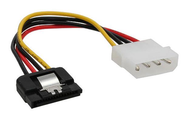 Power connection cable for SATA HDDs on standard PSUs. Technical specifications: 4-Pin power connector to 15-Pin SATA connector With safety latch on the SATA connector Length: approx. 15cm Extent of delivery: 1x SATA Power cable internal 4-Pin Molex to SATA 15cm