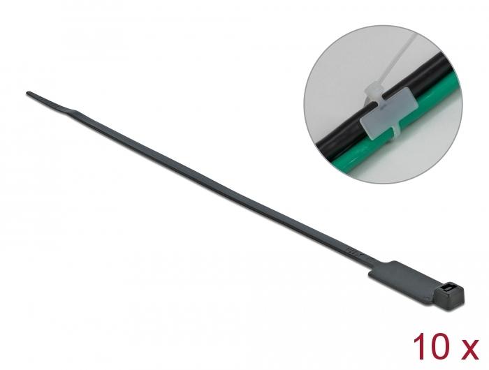 Neid Delocki kaablisidemeid saab kasutada üksikute kaablite, juhtmete ja torude ruumi kokkuhoidlikuks komplekteerimiseks.IdentifitseerimisvõimalusKaablipaelad võivad olla individuaalselt märgistatud või varustatud erinevate sümbolitega, et kaablikimbud üksteisest eristada.Briljantne vastupidavusKaablisidemed on hästi vastupidavad kõrgetele temperatuuridele ja neid iseloomustab nende tõmbetugevus.SpetsifikatsioonPikkus: ca 200 mmLaius: ca 2,5 mmKogus: Polükott: 10 tükki polümeerikoti kohtaKimpude läbimõõt: max. 54 mmVärv: mustÜhekordseks kasutamiseksMaterjal: polüamiid 6.6Keskkonnatemperatuur: -40 °C ~ 85 °CTulepüsivus: 94V-2Tõmbetugevus: kuni 8 kgPakendi sisu10 x kaabliside koos sildiga kraaniga
