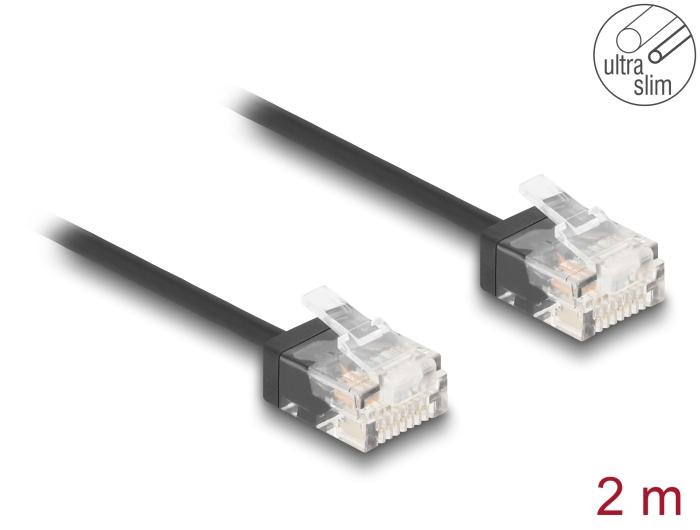 Seda Delocki võrgukaablit saab kasutada erinevate võrguseadmete ühendamiseks, nt võrguühenduslüliti ja kommutaatori või patch-paneeli ühendamiseks.Õhuke ühenduskaabelÕhukestele kaablitele on omane väike kaabli läbimõõt, mis võimaldab paindlikku ja ruumi säästvat kaabeldamist võrgukapis.Ülimalt õhuke disainÜlimalt õhukesed ühenduskaablid pakuvad suurt paindlikkust, nad on kergemad ja väiksemad kui tavalised ühenduskaablid.SpetsifikatsioonLiitmikud:1 x RJ45 pistik1 x RJ45 pistikPistiku pikkus: 16,7 mmCat.6 spetsifikatsioonAndmeedastuskiirus kuni 1 GbpsRibalaius: 250 MHzUTPÜlimalt õhukeKaabli gabariit: KAABEL: 32 AWGKontaktid kullatud: 50 u″Kaabli läbimõõt: ca. 2,6 mmKaabli mantli materjal: PVCVärv: mustPikkus: ca. 2 mSüsteeminõudedVaba RJ45 pesaPakendi sisuRJ45-kaabel