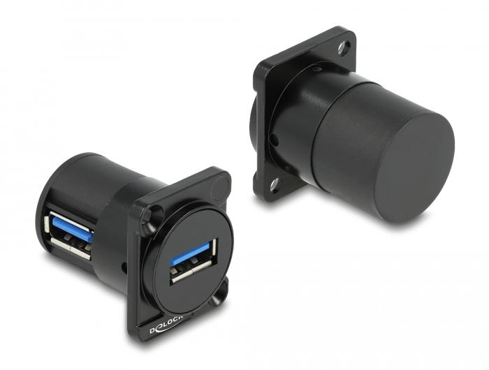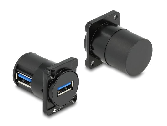 Seda Delocki moodulit saab paigaldada näiteks paneelidesse või korpustesse, millel on D-tüüpi avad XLR-pistikutele. See muudab selle ideaalseks digiseadmete integreerimiseks professionaalsetesse audiosüsteemidesse.IP67 tolmu- ja veekindelLiides pakub kaablite ühendamiseks suuremat kaitset mustuse ja niiskuse eest.SpetsifikatsioonLiitmikud:1 x SuperSpeed USB 5 Gbps (USB 3.2 Gen 1) Type-A emane1 x SuperSpeed USB 5 Gbps (USB 3.2 Gen 1) Type-A emasliitmikD-tüüpi 31 x 25 mm pordilePaneeli väljalõige (läbimõõt): ca. 24 mmAndmeedastuskiirus kuni 5 GbpsKaitseklass: IP67KaitsekorgigaKaks kinnitusauku kruvikinnituseksMaterjal: plastikVärv: mustMõõtmed (LxSxK): ca. 32,4 x 31,0 x 26,0 mmPakendi sisuD-tüüpi moodul