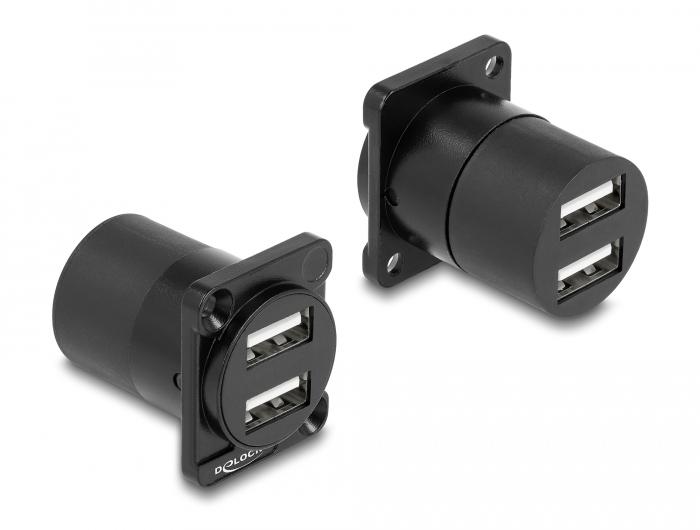 Seda Delocki kaablit saab kasutada näiteks D-tüüpi avaga paneelidesse või korpusesse paigaldamiseks. Seda saab kasutada ka erinevate USB Type-A seadmete ühendamiseks. SpetsifikatsioonPistikud:1 x USB 5 Gbps Type-A emasliides: 1 x USB 5 Gbps Type-A1 x USB 5 Gbps Type-A emasühendusAndmeedastuskiirus kuni 5 Gbps1:1 ühendatudKaabli gabariit:Kaabel: 28 AWG andmeliin: 28 AWG24 AWG toiteliinD-tüüpi portide puhul, mille mõõtmed on 24 x 19 mmPaneeli väljalõige (läbimõõt): ca 24 mmKaks kinnitusauku kruvikinnituseksKaabli läbimõõt: ca. 6 mmPikkus koos pistikutega: ca. 20 cmMaterjal: PVCVärv: mustSüsteeminõudedVaba USB A-tüüpi portPakendi sisuD-tüüpi kaabel
