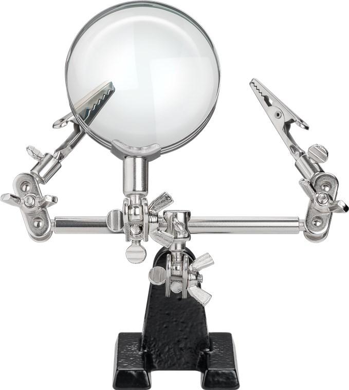 "Kolmas käsi" jootetugi luubiga ideaalne tugi kõigile täpsust ja õrnust vajavatele jootmistoimingutele heavy cast pillar with eight ball joints and two movable grip clamps magnifier with a glass lens (ø 59.7 mm) with 2.5x magnification