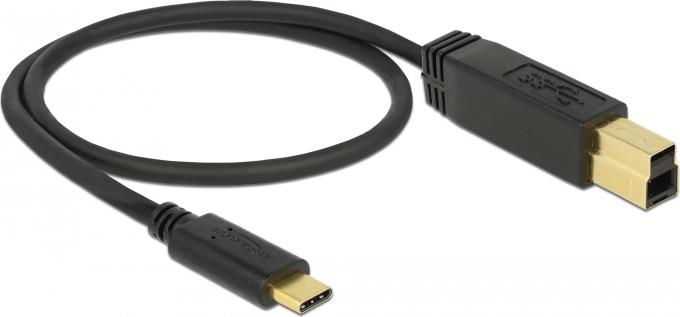 This USB cable by Delock enables the connection between a device with a USB Type-B connector and a PC or a laptop equipped with a free USB Type-C™ port. Specification• Connectors: 1 x SuperSpeed USB 10 Gbps (USB 3.1 Gen 2) USB Type-C™ male > 1 x SuperSpeed USB 10 Gbps (USB 3.1 Gen 2) Type-B male• Cable gauge: 30 AWG data line 24 AWG power line• Host = USB Type-C™; Device = USB Type-B• Resistor: 5.1 kΩ• Output current: up to 3 A• Cable diameter: ca. 4.5 mm• Data transfer rate up to SuperSpeed USB 10 Gbps• Colour: black• Length incl. connectors (L): ca. 0.5 m System requirements• PC or laptop with a free USB Type-C™ port• Device with SuperSpeed USB Type-B port Package content• SuperSpeed USB 10 Gbps cable