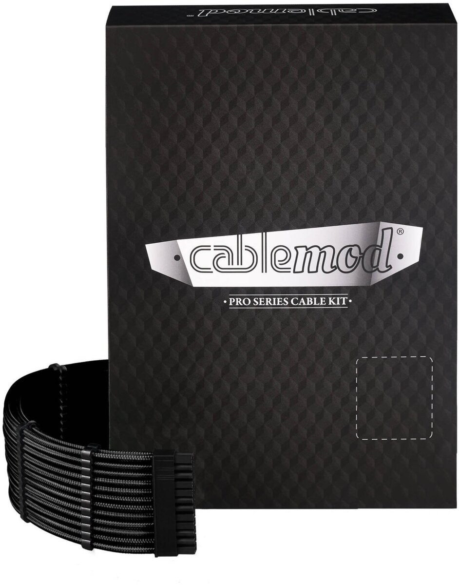 Cable set from CableMod, suitable for Corsair Type 5 RMx SHIFT PSUs, including 16-pin to 16-pin cable as well as 16-pin to 3x 8-pin microfit PCIe, StealthSense for a clean look, sleeved cables, pre-installed cable combs