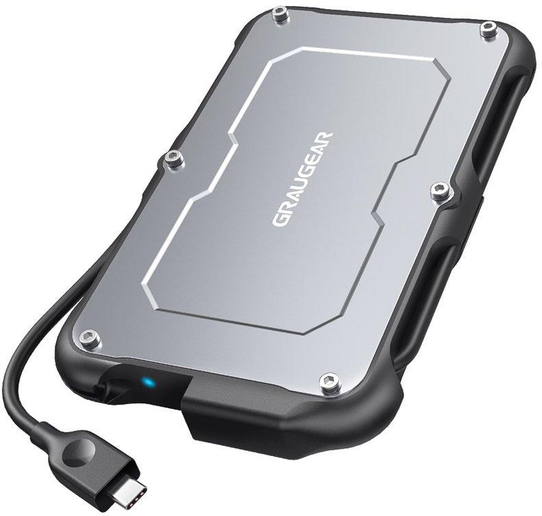 Externes Gehäuse für 2,5-Zoll-Laufwerke, USB-C-Anschluss, stoßfestes Gehäuse aus Silikon, schockabsorbierend und spritzwassergeschützt, bis zu 6 Gbit/s Übertragungsgeschwindigkeit