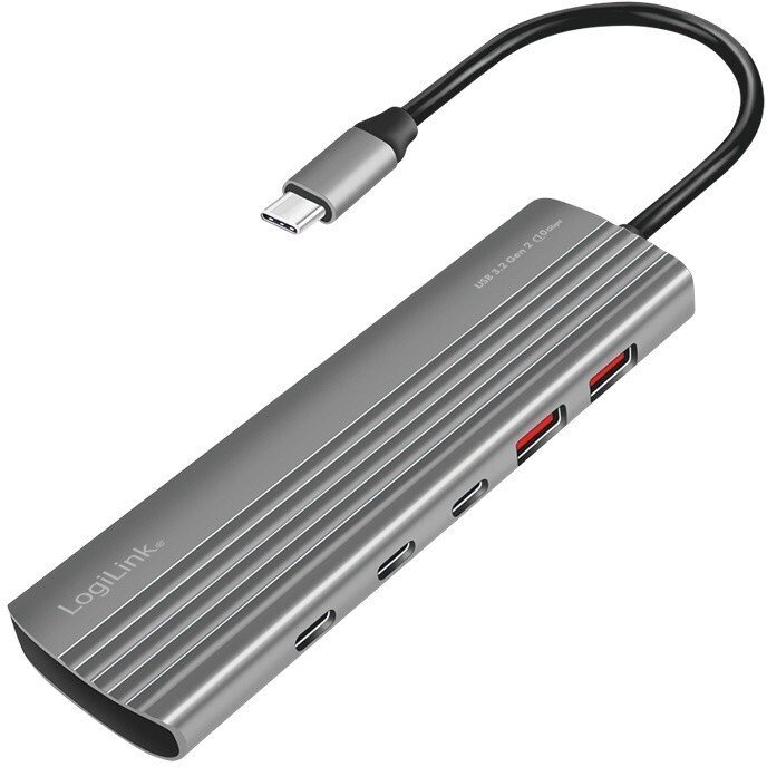 The USB-C hub supports the modern USB 3.1 Gen2 standard and allows you to connect up to 10 devices. Of course, you can also connect and use devices of older USB generations. This practical and noble-looking hub with its aluminum design is a real eye-catcher on each desk. Easy connection via Plug & Play. USB 3.1 Gen2 transfer rates of up to 10 Gbps.