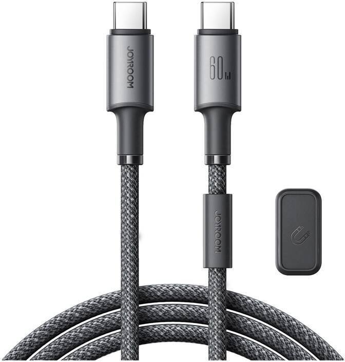 Joyroom S-A50 USB-C - USB-C cable, 60W, 1.2m grayThe Joyroom S-A50 cable is a reliable accessory that combines charging speed, durability and convenience. Made of high-quality materials, resistant to damage and heavy use, it ensures long-lasting satisfaction. The magnetic design and exceptional build quality make it an ideal choice for those looking for a convenient, fast and durable charging cable.Fast and safe chargingThe cable offers fast charging with 60 watts of power, which will renew your device's energy at an express pace, maintaining full efficiency and safety. The intelligent voltage and current regulation system ensures optimal power, adapted to the connected device. In this way, you will avoid overheating and excessive battery consumption, and charging will become faster and more efficient.Convenient useThanks to the built-in magnetic design, the cable is extremely easy and comfortable to use. The magnetic cover slides freely over the cable design, allowing you to use it comfortably without struggling with tangled wires. In addition, the cable comes with an additional magnetic base that can be easily attached to any smooth metal, wood or plastic for convenient and tidy use.Made for heavy useMade of high-quality metal, the Joyroom S-A50 cable is resistant to damage, ensuring longevity even under heavy use. Featuring a special design with a thicker copper core, the cable provides faster charging and has a lifespan of more than 30,000 cycles, which means unparalleled durability compared to standard cables.Durability for years to comeThe S-A50 features a 48-strand high-density braided nylon cable, which makes it extremely resistant to abrasion and wear. In addition, the cable is resistant to oxidation, ensuring reliability and longevity. The end of the cable supports loads of up to 7 kg, making it one of the strongest cables on the market. ManufacturerJoyroomModelS-A50ColorGrayMaterial of constructionAluminum alloy, nylon braid, TPEApplicationDevice charging, file transferCharging powerPD 60 WData transfer speed480 MbpsCable length1.2 mPortUSB-C to USB-C
