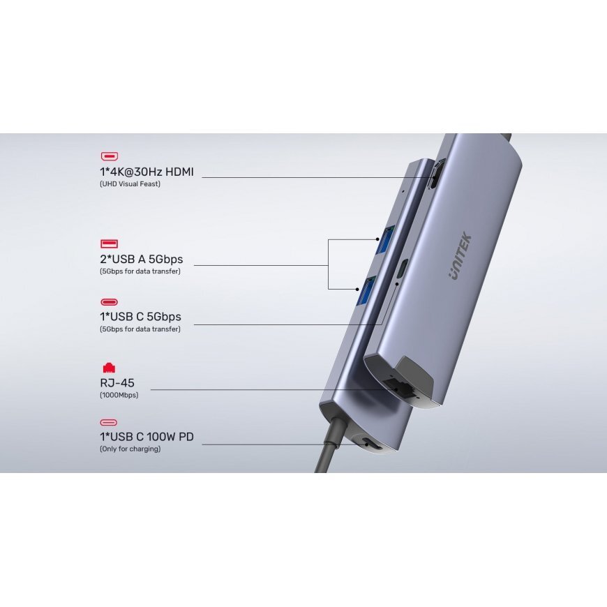 Discover the power of seamless connectivity with the Unitek USB-C hub. Designed for professionals and tech enthusiasts alike, this hub transforms a single USB-C port into a versatile workstation. With three SuperSpeed USB 3.0 ports, an HDMI output, and a 1000Base-T network port, it caters to all your connectivity needs. Whether you're transferring data at high speeds, expanding your display setup, or requiring a stable network connection, this hub ensures your productivity remains uninterrupted. Its compact desktop form factor makes it an ideal addition to any workspace, offering a clutter-free solution to peripheral management. Embrace the efficiency of multiport connectivity with Unitek's reliable hub solution.