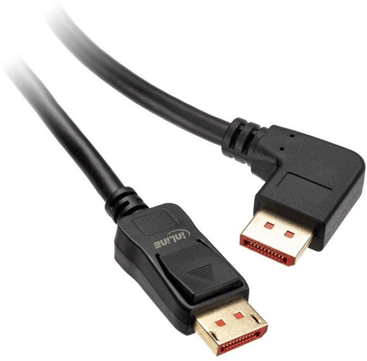 Schwarzes DisplayPort-1.4-Kabel, kompatibel zu UHD-II/FUHD (8K4K), vergoldete Kontakte, dreifach geschirmt, gerader Stecker auf nach oben gewinkelt, 2 m Länge