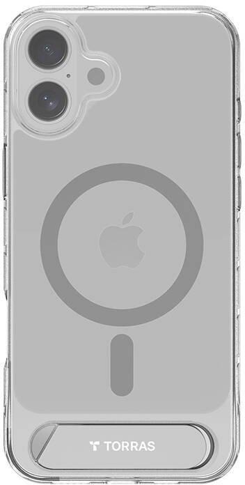Torras Pstand Series Case for iPhone 16 Plus (transparent)The Torras Pstand case for iPhone 16 Plus features a magnetic design and offers a stable stand for comfort and protection of your device. It also allows fast wireless charging, and compatibility with magnetic accessories enhances its functionality.Stability and securityThe practical stand guarantees stability when using the phone. The solution used is particularly useful when watching movies and video conferencing. Thanks to MegaMag™ technology and N56 magnets, the case is great for traveling and reliably stays in place even on uneven surfaces, making it easier to use navigation applications.High quality manufacturingPleasant-to-the-touch materials were used for the Torras Pstand case, which provide a secure grip, minimizing the risk of the phone slipping out of your hand. Precisely made cutouts allow comfortable use of all functions. The accessory also prevents the device from overheating during intensive use.Protection against dropsThanks to X-Shock™ technology and multi-layer construction, the case provides four times higher drop resistance compared to standard products. The product offers military-grade (Mil-Grade) protection against falls from heights of up to about 3.6 meters. The 360° Airbag technology guarantees full protection of the phone's edge, absorbing shocks and minimizing the risk of damage. In addition, the raised edge further protects the lens. ManufacturerTorrasModelPstandCompatibilityiPhone 16 PlusColortransparent