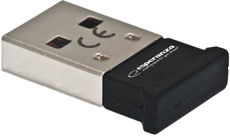 Esperanza EA160 Bluetooth USB adapterDiscover a new dimension of wireless convenience with the Esperanza USB adapter! With it, you can expand your computer with Bluetooth wireless communication, connecting it to a wide range of devices, from cell phones to printers or digital cameras. It supports the Bluetooth 5.0 standard, which means you can enjoy data transfers of up to 50 Mbps, ensuring smooth file transfers and media streaming. It's extremely easy to install - just plug it into a USB 2.0 port, and it's ready to go! ManufacturerEsperanzaModelEA160Bluetooth version5.0TransferUp to 50 MbpsReceiver sensitivity-92 dBmOperating frequency2.402-2.480 GHzBluetooth transmitter power6 dBmRangeUp to 20 mDimensions18 x 22 x 7 mmConnector typeUSB 2.0Compatibility with systemsWindows 7, Windows 8, Windows 10 (no driver required for Windows 8 and above)