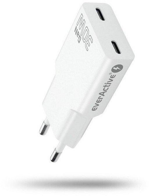 Travel adapter with total output power 87W for charging of notebooks and MacBook. Charger has 2 USB-C outputs with Power Delivery technology and 2 USB outputs with Qualcomm Quickcharge 3.0. SPECIFICATION:Input: AC 100-240V, 50-60Hz, 2AOutput USB-C PD: DC 5V,9V,12V,15V,18V, 20V/4.35A max.Max. power USB-C PD3.0 PPS: 87WOutput USB-A QC3.0: DC 3.6-6.5V, 9V, 12V, 14.5V, 16V, 19V,20V/3.5A Max.Max. power USB-A QC3.0: 70WSize: 110 x 98 x 20.5 mmWeight: 240 gCable: 1.5m longTemperature of use: 0-45 °C