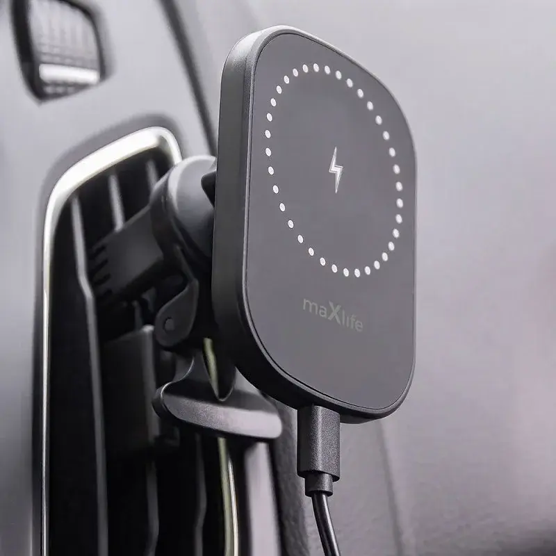 Telefonihoidik ja juhtmevaba laadija ühes Kinnitub auto ventilatsiooniavasse Laadimisvõimsus: kuni 15 W Ühildub MagSafe tehnoloogiaga 360° pööratav disain