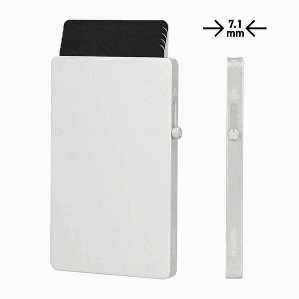 Valenta kaarditasku on korraga nii stiilne, funktsionaalne kui ka mugav. Kaarditasku sobib hästi ID-kaardi või krediitkaardite hoiustamiseks. Taskul on sees tugevad magnetid, mis võimaldavad selle telefoni või selle ümbrise tagumisele küljele kinnitada. Tugevdatud alumiiniumist kaarditasku mahutab kuni 5 kaarti ja sisaldab RFID/NFC kaitset, tänu millele on soovimatud viipemaksed blokeeritud.