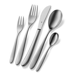 Muuda iga eine visuaalselt nauditavaks WMF Atria söögiriistade komplektiga. Lihtne ja ajatu disain koos läikiva viimistluse ning ergonoomilise kujuga sobitub igasse kätte. • 30-osaline komplekt kuuele: 6 söögikahvlit, 6 sööginuga, 6 supilusikat, 6 koogikahvlit, 6 teelusikat • Peene välimuse ja ergonoomilise tunnetusega esmaklassilised söögiriistad • Cromargan® 18/10 roostevaba teras – vastupidav, hügieeniline ja visuaalselt kaunis materjal • Kõik selle söögiriistakomplekti osad on igapäevaseks mugavuseks nõudepesumasinas pestavad • Noad on sepistatud ühest roostevabast terasest tükist • Kvaliteetne söögiriistade karp turvaliseks ja mugavaks hoiustamiseks