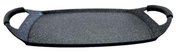 Pensofal Saxum Grill Plate 47x27cmTootekirjeldus inglise keeles:High fry pan in cast aluminium, with non-stick coating, 9 layers, stone effect inside and unalterable outside. Soft touch handle in bakelite, stainless steel double bottom suitable for all kind of hobs, including Induction.The perfect fusion between stone and aluminiumSaxum Collection is made of high tick cast aluminium with non-stick inside coating Biostone® Pro, 9 layers, STONE effect, PFOA free, resistant to scratches and abrasions, using appropriate utensils. The outside coating is non-stick, unalterable and easy to clean.The double bottom in stainless steel is suitable for all kind of hobs, including Induction.The Bakelite handles are ergonomic and soft touch for a safer grip.Saxum Collection is suitable for people intolerant to heavy metals.Diameter: 47 x 29 cmSize: 5 x 49 cmWeight: 1.3 kgBottom diameter: 18 cm