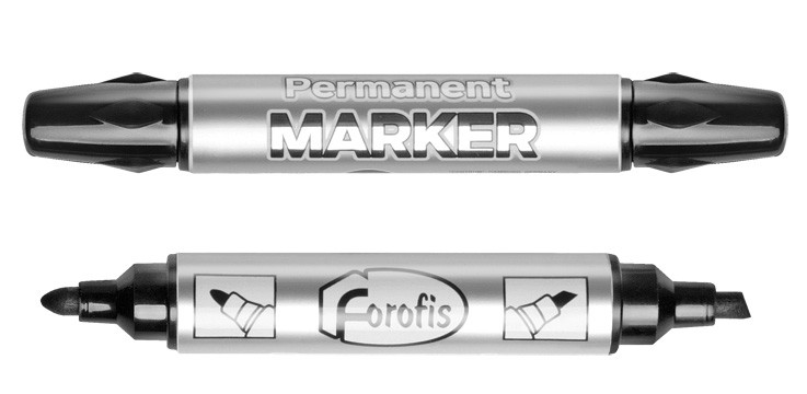 Kahe erineva otsaga permanent marker, veekindel, sobib paljudele erinevatele materjalidele: klaasile, plastile, puidule,kilele, CD-le. • Lõigatud ots: 1-5mm ja kooniline ots: 3mm