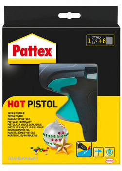 Pattex Hot on kuumliimipüstol ning läbipaistva koostisega kiireks ja püsivaks liimimiseks mõeldud kuumliimipulgad. • Kinnitamiseks, liimimiseks, parandamiseks ja dekoreerimiseks. • Puit, paber, papp, nahk, tekstiilid, kork, klaas, metall, plastik. Ei sobi plastifitseeritud PVC, PE, PP, Tefloni (PTFE) ja stüropori liimimiseks. • Kinnitage metallist stend. • Sisestage Pattexi kuumliimipulk. • Asetage liimipüstol papist või puidust alusele. • Laske püstolil umbes 8-10 minutit soojeneda. • Lõplik tugevus saabub 2 minuti pärast. • sobivad liimipulgad diam. 11mm