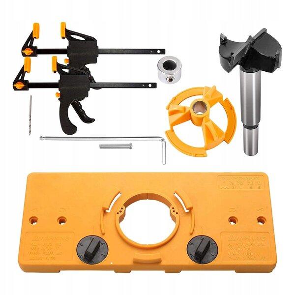 Kingrony Metallist 35 mm hingedepuurimise šabloon, avatud avaga positsioneerid, kollased