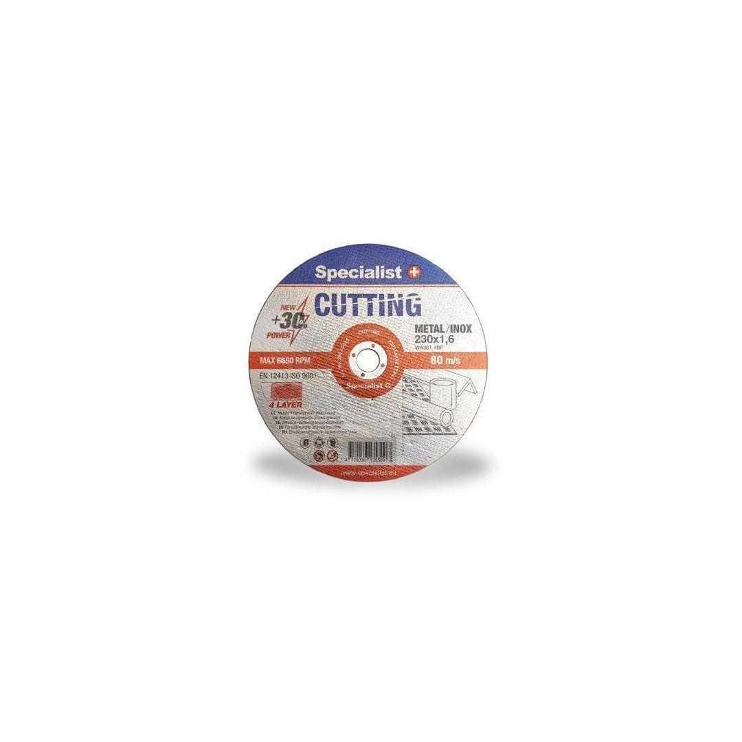 Specialist+ lõikeketas Metal/Inox 230 x 1,6 x 22 mm. Heade lõikamisomadustega ketas soodsa hinna eest. Sobib erinevate metallide lõikamiseks. Paksemad 1,6 - 2 mm universaalkettad sobivad enamiku metallitoodete jaoks.