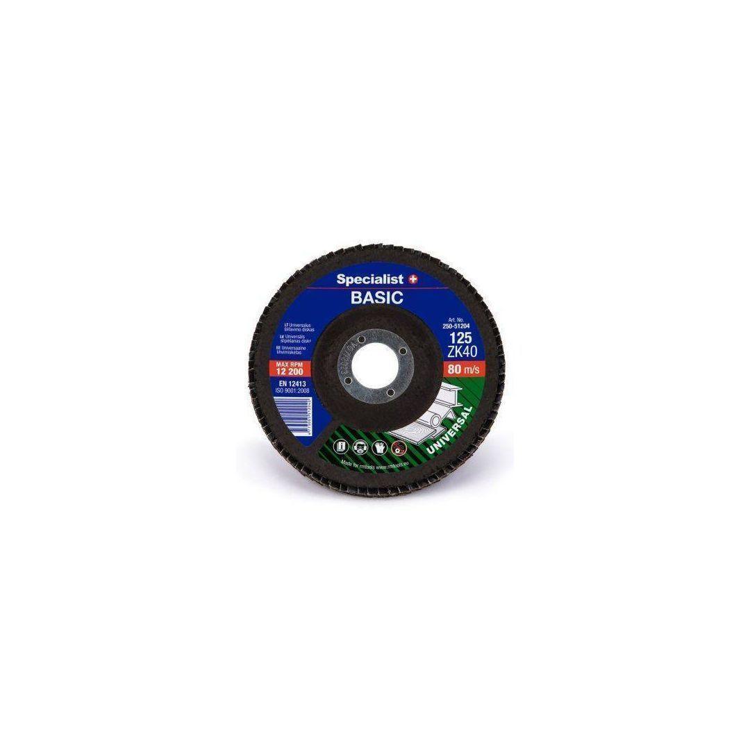 Specialist+ lamellketas Universal 125 mm ZK40. BASIC FLAP lehtkettad on ette nähtud universaalseks enamuse materjalide - puidu, metalli, plastiku - lihvimiseks. Suuremad suurused sobivad kiiremaks töötlemiseks, vuukide silumiseks, puidu kujundamiseks või sügava rooste eemaldamiseks, väiksemad - kenaks silumiseks, pinna lõpetamiseks, teritamiseks jne. Specialist+ toodete kvaliteetsed materjalid ja suur lehtede kogus kettas võimaldab töötada efektiivselt ja produktiivselt.