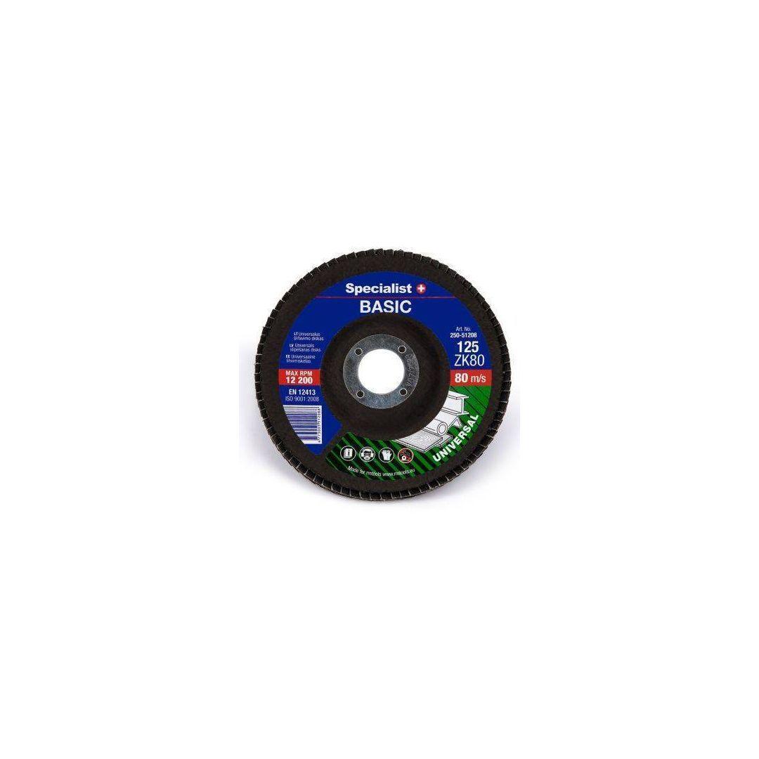 Specialist+ lamellketas Universal 125 mm ZK80. BASIC FLAP lehtkettad on ette nähtud universaalseks enamuse materjalide - puidu, metalli, plastiku - lihvimiseks. Suuremad suurused sobivad kiiremaks töötlemiseks, vuukide silumiseks, puidu kujundamiseks või sügava rooste eemaldamiseks, väiksemad - kenaks silumiseks, pinna lõpetamiseks, teritamiseks jne. Specialist+ toodete kvaliteetsed materjalid ja suur lehtede kogus kettas võimaldab töötada efektiivselt ja produktiivselt.