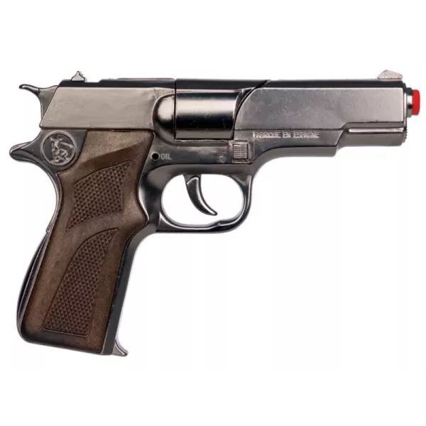 Käed üles! Iga väikese poisi elus tuleb hetk, kui nad tahavad olla politseinikud või pangaröövlid. Selle püssipadruniga, metallist relvaga saavad nad kohe seigelda, et tabada lindpriisid või röövida panka väikelinnas. Või võib-olla hoopis privaatdetektiividena Los Angelese udustes tänavates, kus ainult kujutlusvõime seab piirid. Relv on valmistatud metallist ja plastist ning sellesse mahub 8-osaline paukpadrun (müügil eraldi meie veebipoes). Täidetud relva kuklas viskab suure paugu, kui päästikut vajutada. Ideaalne ka kostüümilisandina. Relva suurus: 18 cm Pakendi suurus: 35 x 20 x 12 cm