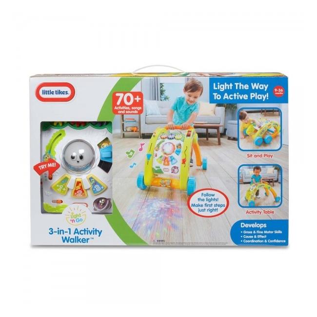 Little Tikes 3in 1 Mängukeskus on ideaalne aktiivseks tegevuseks lapsele. Sellega saab laps teha oma esimesed sammud, toetudes käimistoele. Mängukeskuse saab kokku panna ning istudes saab mängides vajutada mängupaneelil olevatele nuppudele, mis mängivad muusikat ning on erinevate valguse-ja heliefektidega. Kokku üle 70 tegevuse. Sobib lastele vanuses 6-36 elukuud. Komplektis olevad patareid on mõeldud ainult toote proovimiseks. Palun soetage uued patareid, et toote kõiki funktsioone kasutada.