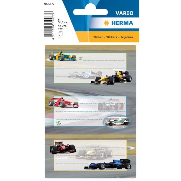 Praktiline vihikuetikett, kaunistatud F1 autodega. Pakendis on 6 erineva mustriga isekleepuvat kleepsu, kuhu saab kirjutada lapse nime ja klassi. Spordiauto vihiku etikettidega algab uus kooliaasta veelgi rõõmsamalt. Suurus: 76 x 35 mm