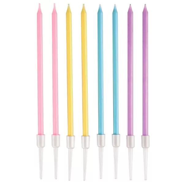 Nende makrooni värvide poolt inspireeritud küünaldega saab sünnipäevatordi tõeliselt eriliseks muuta. Küünalde valge alus on lihtsalt tordi sisse torgatav. Täiuslik tordikaunistus nii väikestele kui ka suurtele. Suurepärane valik tähtpäevadeks, ettevõtteüritusteks ja loomulikult sünnipäevadeks. Komplekt sisaldab 8 küünalt. Küünalde suurus: u 14 x 0,3 cm