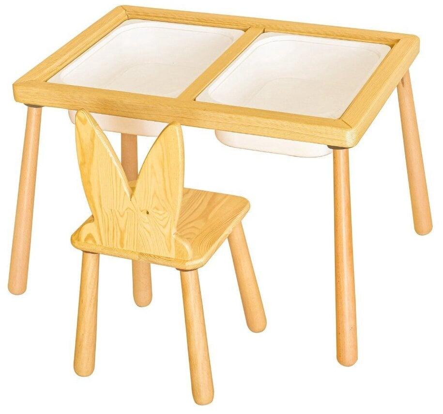 Muuda oma lapse mänguaeg meie armsa laste lauasetiga, mis on valmistatud 100% männipuidust, et tagada vastupidavus ja ohutus. Võluv roosa värv lisab igasse mängutuppa või magamistuppa veidi mängulisust, luues hubase ja kutsuva ruumi, kus sinu väike saab avastada, õppida ja luua mälestusi, mis kestavad kogu elu.Julge loovust ja kujutlusvõimetVaata, kuidas sinu lapse kujutlusvõime ellu ärkab selle mitmekesise lauasetiga, mis sobib ideaalselt kunstide ja käsitöö, teepidude, kodutööde ja muude tegevuste jaoks. Tugev konstruktsioon tagab stabiilsuse ja ohutuse, samas kui kompaktne suurus on ideaalne väikeste ruumide jaoks.Kvaliteetne käsitööIga tükk on hoolikalt valmistatud kvaliteetsest männipuidust, mis on tuntud oma tugevuse ja vastupidavuse poolest, muutes selle pikaajaliseks lisandiks sinu lapse mänguruumi. Sile viimistlus ja ümarad servad pakuvad lisaturvalisust sinu meelerahu nimel.Lihtne kokku panna ja hooldadaSelle lauaseti üles seadmine on lihtne, koos lihtsate juhiste ja kõigi vajalike kinnitusdetailidega. Lihtsalt puhastatav pind muudab hooldamise kiireks, nii et saad rohkem aega veeta väärtuslike hetkede nautimisega oma väikese kaaslasega.Tehnilised andmed:Materjal: 100% männipuitLaud: Laius 53 cm x Kõrgus 52 cm x Pikkus 74 cmTool: Laius 28 cm x Kõrgus 32 cm x Sügavus 28 cmVärv: RoosaKandmisvõime: Laud - 50 naela, Tool - 30 naelaSoovitatav vanus: 3 aastat ja vanemadÄra jäta kasutamata võimalust luua oma lapsele maagiline ruum mängimiseks ja kasvamiseks. Tellige meie laste lauasett juba täna ja tehke nende unistused teoks!