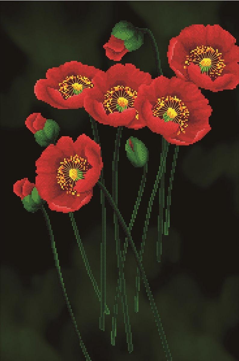 Diamond Dotz Ristpistes tikkimise komplekt Red Poppies On Black, must/punane/roheline