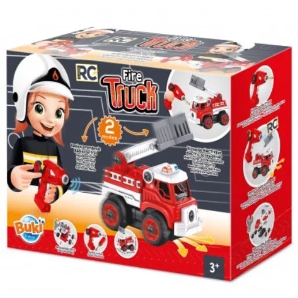 Keeran selle kruvi kinni ja päästetöö alaku! BUKI tuletõrjeauto ehituskomplektiga saavad lapsed kõigepealt ehitada kaugjuhitava hädaabiseadme ning seejärel kogeda selle abil suurepäraseid seiklusi. Karbis on üksikasjalik juhend ja elektriline kruvikeeraja, mis on vajalik auto kokkupanekuks, ning seejärel võib seiklus alata. Mängu käigus arenevad suurepäraselt käelised oskused, tähelepanu ja keskendumisvõime. Mäng pakub võimalust rollimänguks, mille käigus areneb laste kujutlusvõime, fantaasia, loovus ja kommunikatsioon. Komplekt ei sisalda väikseid osi, seega on mäng juba 3-aastastele sobiv. Kaugjuhtimispuldiga saab sõidukit edasi, vasakule ja paremale liigutada. Kokku pandud sõiduki suurus: 24 x 15 cm