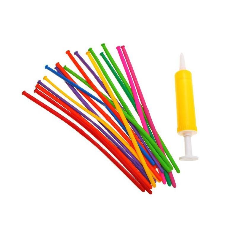 Pump + värvilised õhupallid toru modelleerimiseks u.15tk. Sobivad ideaalselt lapse sünnipäevapeole, karnevaliballile või muule lõbusale üritusele. Õhupallid on aegumatu dekoratsioon sünnipäevadele, pulmadele ja muudele lõbusatele pidustustele.Komplektis on - pump - õhupallitoruVärvilised õhupallid + pump + pakendil olevad juhised erinevate figuuride, loomade, taimede jne. loomiseks. Komplekton tehasepakendis , värviliste õhupallide seguga .Pakendi suurus: 25,5 x 21,5 Kaal : 0,1 kg.