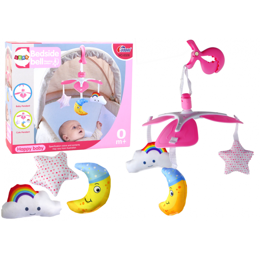 Lean Toys Lean Toys Lastevoodi Karussell Aku töötab Universaalne Klipp pehmed ripatsid Roosad