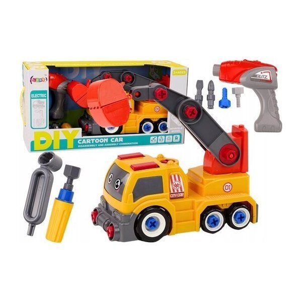 Lean Toys Cartoon Truck With Crane To Dismantle DIY Orange