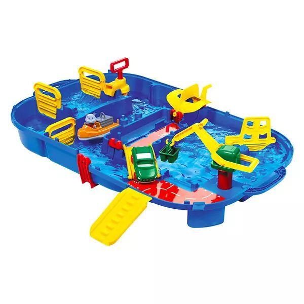 AquaPlay mängud õpetavad ja arendavad lapsi mänguliselt.A üksikutest moodulitest saab luua aina vingema süsteemi, mis võimaldab lastel veelgi rohkem õppida. Peaosa mängib vesi, mille abil õpivad väiksed tundma põhjus-tagajärg seoseid, füüsikat ning see innustab neid ka liikuma. Komplektidel ja moodulitel on ka lisatarvikud, et mängimine oleks veelgi lõbusam. Komplektis on Wilma jõehobu kuju, vesiveski, konteineralus, väike auto, kraana ja lüüs koos veepumbaga. Mängu saab kergesti pakkida plastkohvrisse, seega saab selle hõlpsasti kaasa võtta ka puhkusele. Raja mõõtmed: 85 x 65 x 22 cm