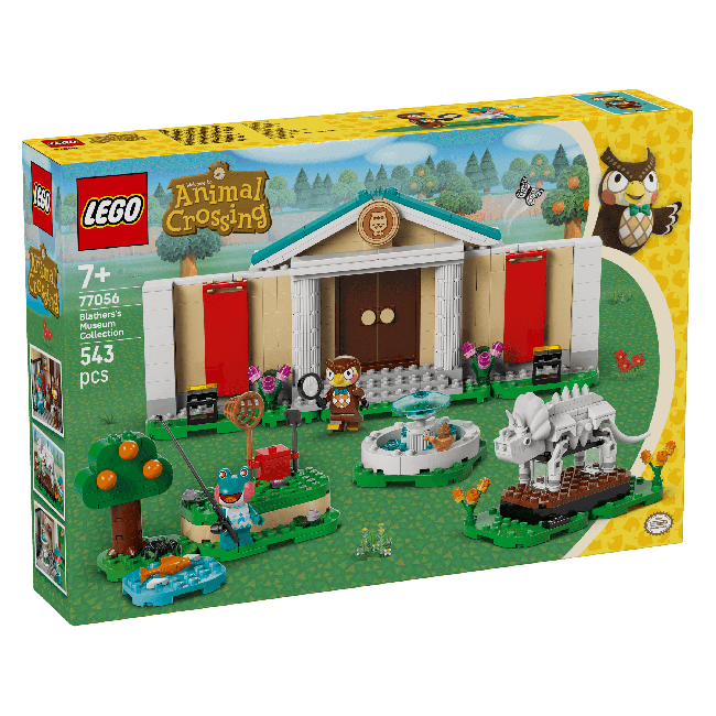 Videomängusarja Animal Crossing™ fännid ja loodust armastavad lapsed saavad nautida praktilist loovmängu Blathersi muuseumikollektsiooni (77056) ehituskomplektiga, mis on ideaalne Nintendo® tegelaskuju kingitus 7-aastastele ja vanematele tüdrukutele ja poistele. See LEGO® ehitusmänguasi taasloob videomängusarjast Animal Crossing pärit muuseumi. Lapsed saavad oma leidudega kohandada erinevaid näitusealasid. Nad saavad labidaga välja kaevata kadunud Triceratopsi sabaluu, püüda akvaariumi jaoks kalu ning püüda võrguga liblikaid ja jubedaid roomajaid. Reguleeritavad hingedega seinad ja ümberpaigutatavad elemendid pakuvad palju mänguvõimalusi. Komplektis on ka purskkaev ja kohvik Roost, kus lapsed saavad lõõgastuda koos Blathersi ja Lily minifiguuridega, enne kui alustavad oma järgmist seiklust loodust avastades. Noored ehitajad saavad nautida ka digitaalset ehitusrõõmu rakenduses LEGO Builder, kus nad saavad mudeleid 3D-s sisse suumida ja pöörata. Komplektis on 543 osa.