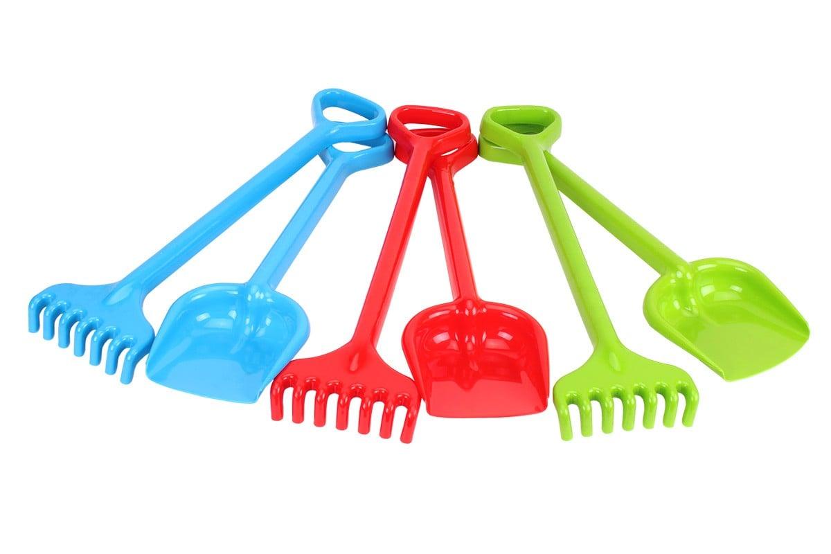 4IQ Liivakasti mänguasjade komplekt Large Spade & Rake, punane/kollane/roheline, 620 mm x 180 mm
