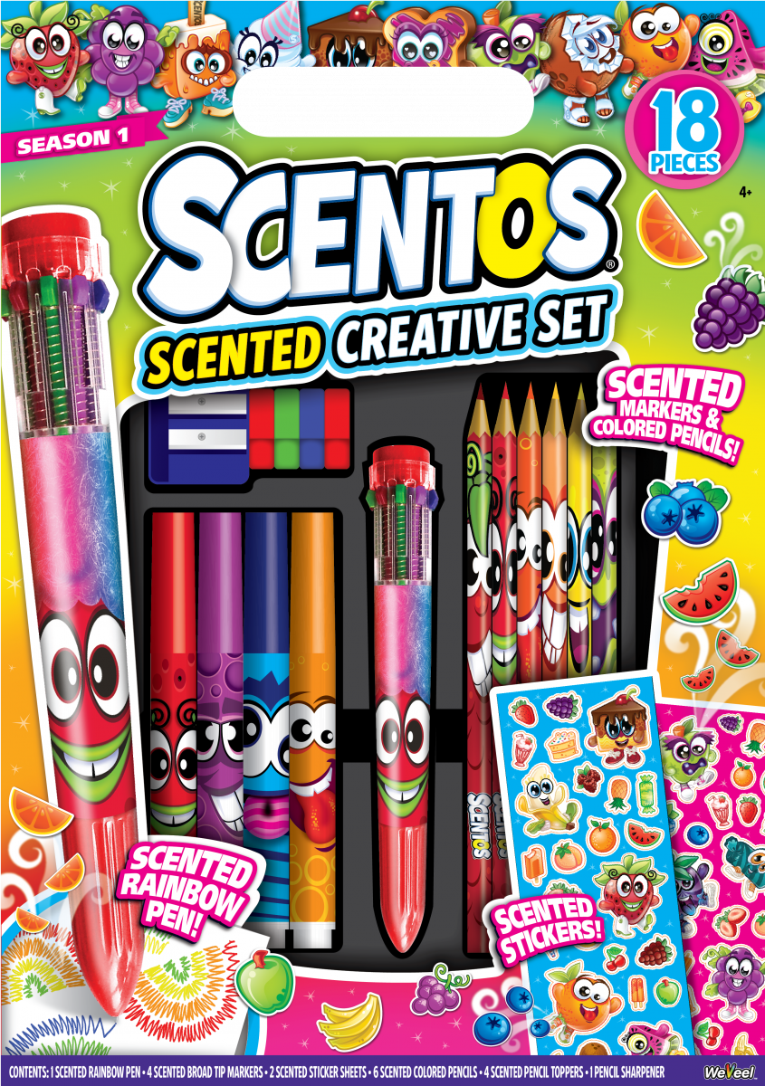 Looge selle Scentose lõhnade loomingulise komplekti abil lõhnavat kunsti, mis näeb ilus välja ja lõhnab maitsvalt!Omadused:Komplekti kuulub: lõhnav vikerkaarepliiats, lõhnastatud markerid 4tk, kleebiselehed 2tk, värvilised pliiatsid 6tk, pliiatsiotsad 4tk ja teritaja.Kõik tooted lõhnavad hästi!