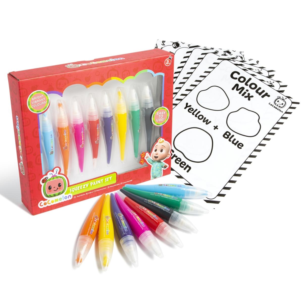 COCOMELON pigistatavate värvide joonistuskomplekt.Toote omadused:Komplekt sisaldab pigistatavaid värve, lehti värvi segamise ülesannetega.Õpetab värve ja nende segamist, aga nendega saab ka lihtsalt joonistada.