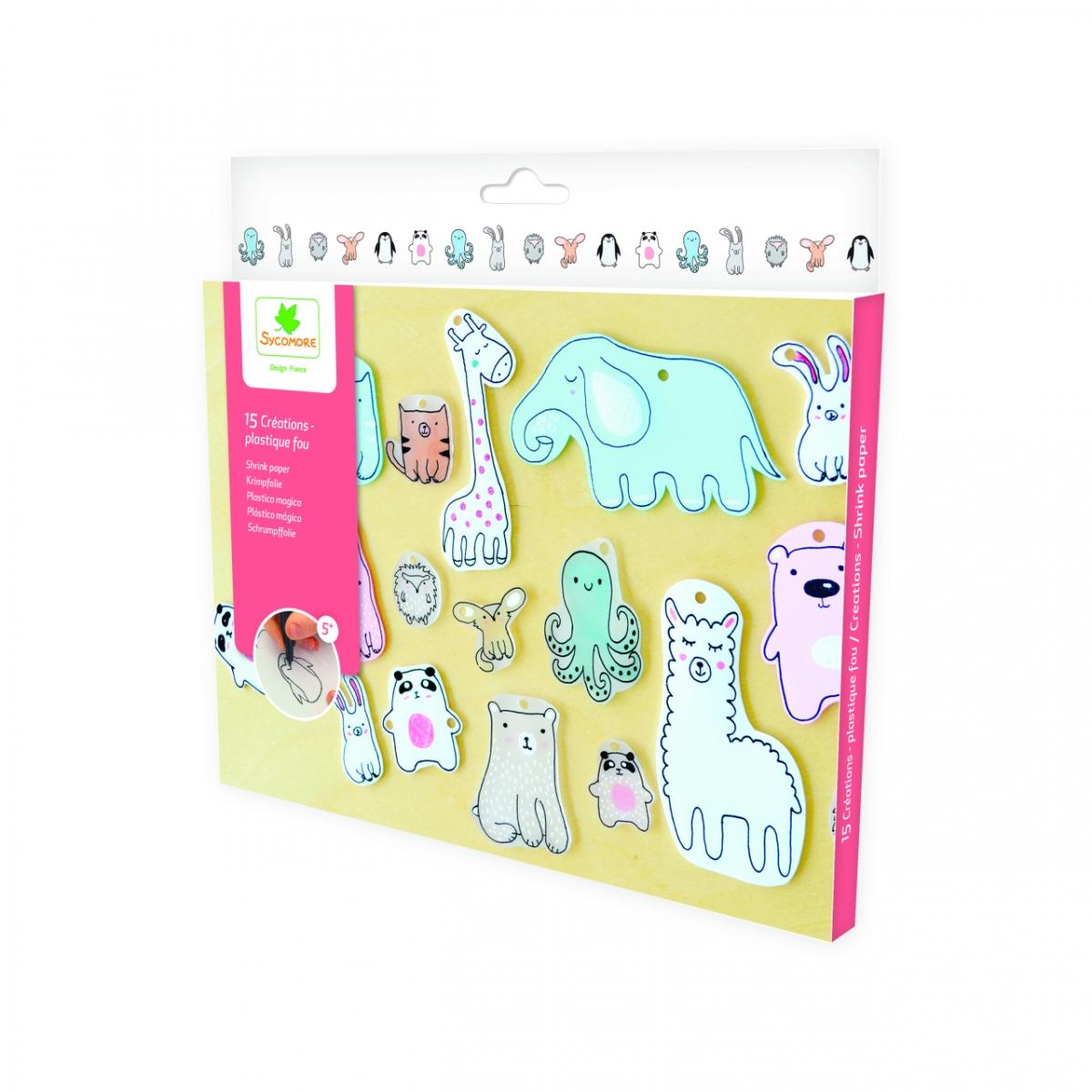 SYCOMORE loominguline komplekt, mis võimaldab luua 12 erinevat mudeltoodet kasutades oma loovust.Toote omadused:Võimaldab luua järjehoidjaid, ripatseid ja 3D-tooteid.Joonista muster paberilehele, värvi see värviliste pliiatsitega ning seejärel lõika ettevaatlikult välja.Küpseta seda ahjus, see tõmbub kokku ja kahaneb 7 korda.Komplekt sisaldab: 2 paberilehte (120 g), millele on prinditud 12 erinevat mustrit, 4 plastlehte (16,5 x 22 cm) ja 1 kasutusjuhendit.