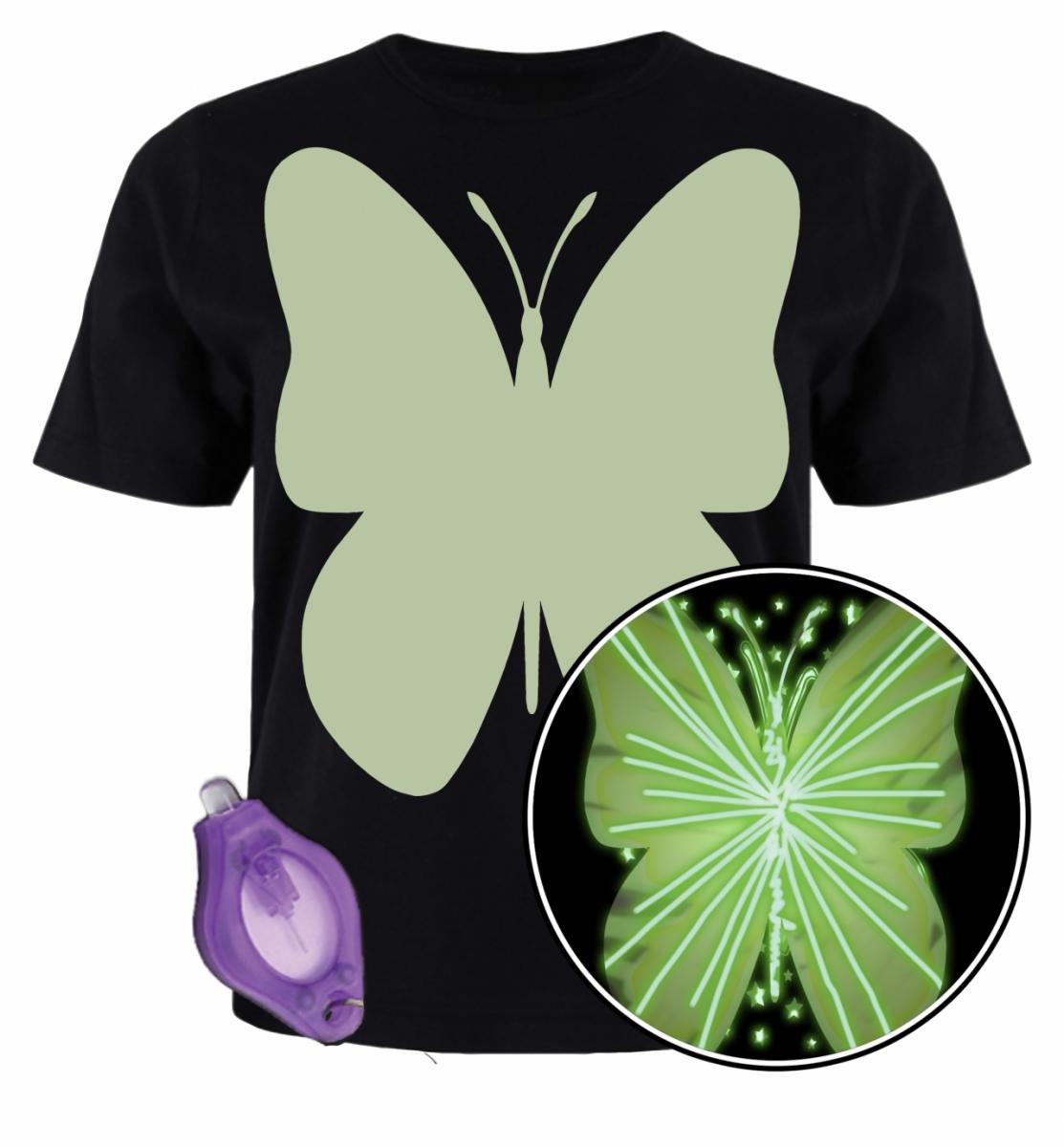 SPLAT PLANET laste t-särk, mis helendab pimedas - Liblikas.Toote omadused:T-särgi valge pilt helendab pimedas peale valges olemist.Komplekti kuulub helendav pliiats-taskulamp.Vajutades pliiats-taskulambile, lülitub sisse valgus, millega saab joonistada t-särgile pildi. Pilt on nähtav pimedas. Kui pilt kaob, saab selle uuesti joonistada. Lisaks saab joonistamiseks kasutada laservalgust, telefoni või teisi valgusseadmeid.Pesta 30° juures.Koostis: 100% puuvill.Sobib lastele vanuses 12 kuni 13 eluaastat.