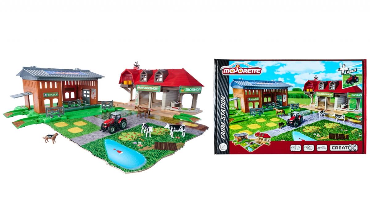 MAJORETTE talukomplekt koos traktoriga Creatix.Toote omadused:Talukomplektis on traktoriremonditöökoda, mahepood, ladu ja muud tarvikud.Komplekti kuulub ka kvaliteetne metalltraktor koos haagisega, figuurid, loomad ja mängumatt.Suurepärane pakkumine väikestele talunikele.Talukomplekti saab kombineerida teiste Creatixi komplektidega.Mõõdud: 67,5 x 57,5 x 19,5 cmSoovitatav vanus alates 5+ eluaastast.