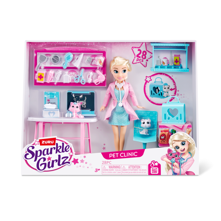 SPARKLE GIRLZ Veterinaarkliiniku komplekt, kust leiate nuku, lemmikloomafiguure ja rohkem kui 30 erinevat aksessuaari, millega loote tõelise veterinaarkliiniku atmosfääri!
