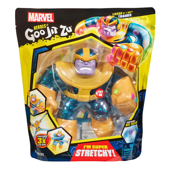 GOO JIT ZU MARVEL Thanos.Toote omadused:Muljetavaldav, veniv ja kleepuv superkangelane, millel on väga omapärane tekstuur.Kasutage Marveli superkangelasi, et võita pahalased ja päästa päev!Goo Jit Zu Marveli superkangelased on täidetud erinevate venivate materjalidega! Vaadake, kui kaugele saate neid venitada, ja seejärel vaadake, kuidas nad oma algse kuju taastavad.Komplektis on 1 x Goo Jit Zu Marveli superkangelane.Soovitatav vanus alates 4+ eluaastat.
